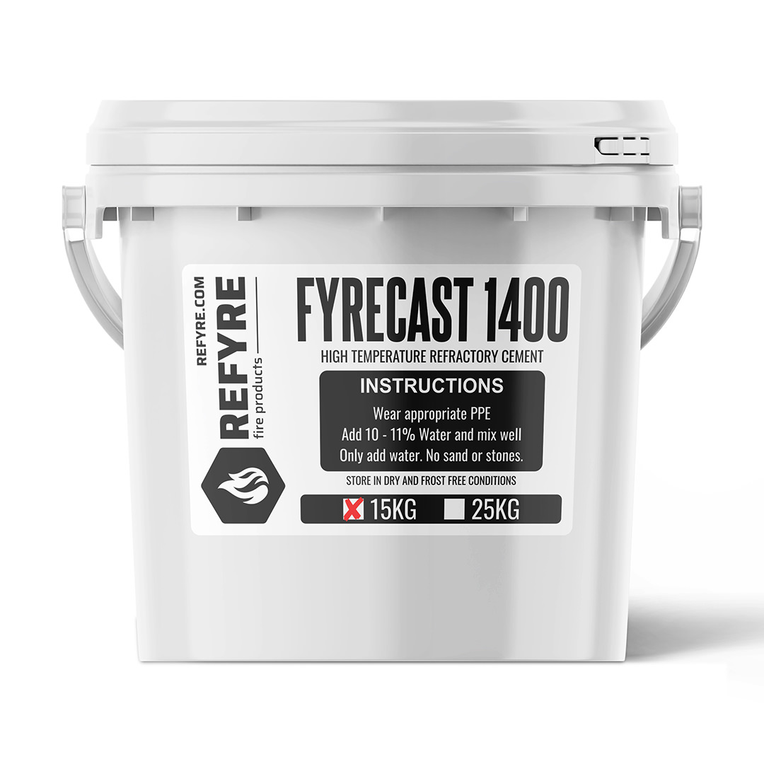 Our FYRECAST 1400 Refractory Cement is a high-performance, dry-mix castable cement engineered to handle temperatures up to 1400°C, making it the ideal solution for demanding applications such as pizza ovens, fireplaces, forges, ovens, kilns, and custom castings. This product chemically sets and cures without the need for heat, providing brick-like hardness and long-lasting durability. Just add water.